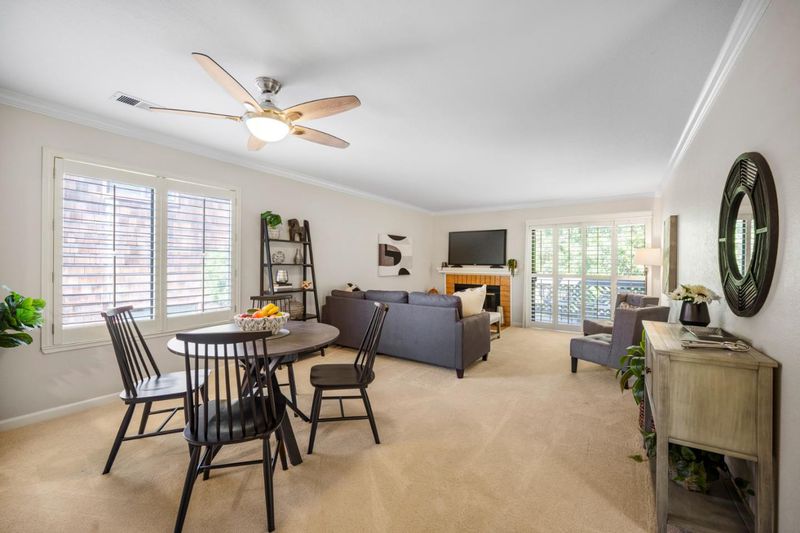Welcome to this inviting 2-bedroom, 1 1/2-bathroom home located in the vibrant city of Gilroy. This charming property offers a bright atmosphere with an open floor plan, maximizing the feeling of spaciousness. Step inside to discover a well-equipped, efficient kitchen featuring an abundance of cabinets and counter space. Don't miss the garden window over the sink. Enjoy cozy evenings by the fireplace in the living room, which also accommodates a dining area for seamless entertaining and a charming balcony for outdoor dining. Newer central AC ensures a comfortable climate year-round, while forced air heating keeps you warm during the cooler months. The convenience of an inside laundry adds to the functional layout of this home. Residents have access to a community pool, perfect for leisurely afternoons. This property is located in an ideal location with shopping, Starbucks, banks and gym within walking distance. You're minutes from the freeway, and minutes from the many local parks and hiking trails. This home is ideal for people who enjoy cycling and the outdoors. Completing this offering is a 1-car garage with shelving, providing secure parking and additional storage options, plus one outdoor assigned space. Don't miss the opportunity to make this delightful home your own.