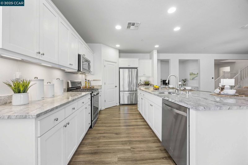- Dishwasher, Gas Range, Microwave, Free-Standing Range, Refrigerator, Dryer, Washer, Water Filter System, Water Softener, Tankless Water Heater, 220 Volt Outlet, Breakfast Bar, Counter - Solid Surface, Stone Counters, Eat-in Kitchen, Disposal, Gas Range/Cooktop, Kitchen Island, Pantry, Range/Oven Free Standing