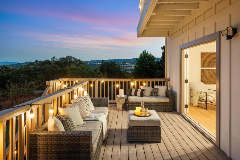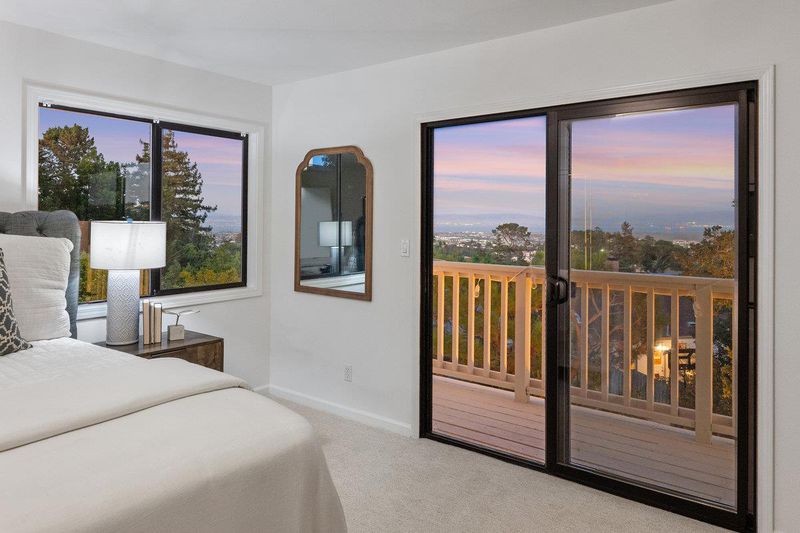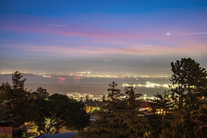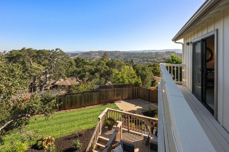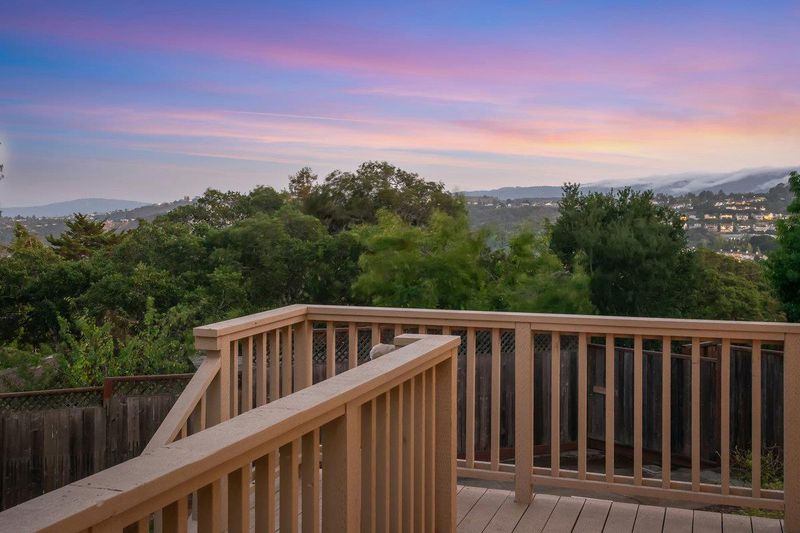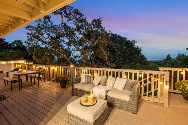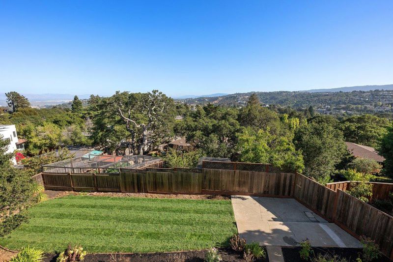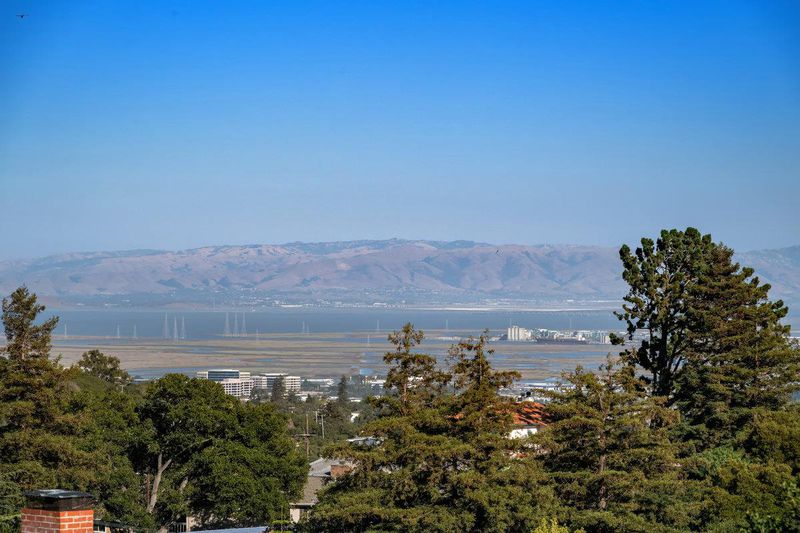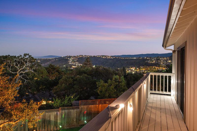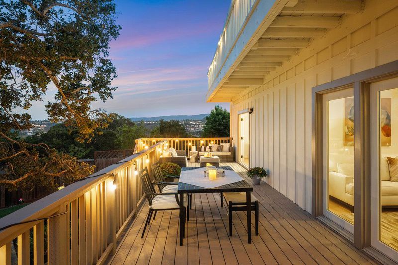 Showcasing sweeping bay-and-hill views & incredible indoor-outdoor spaces, this light-filled Belmont retreat sits on a park-like lot 11,000± sq ft with lush lawn & mature trees. With 4 bedrooms plus a formidable office, expansive decks for entertaining, & astounding views, this home blends comfort with functionality. An extra-long driveway welcomes you & buffers the home from the street. Inside, the main level features an open living/dining/kitchen layout with hardwood floors & a separate family room, both open to a sprawling deck. The remodeled kitchen is anchored by an oversized island and offers new counters, gas oven & stove, two sinks, and abundant storage. A ground-floor bedroom and full bath accommodate guests or multi-generational needs. Upstairs, find two large guest bedrooms, an office, & a generous primary suite; all open to a long view balcony. The hall also accesses a front-facing balcony. Fresh interior paint & brand-new carpet upstairs make the home move-in ready. Out back, the lot unfolds like a private park with level expansive lawn & mature trees ideal for play, pets, & gatherings. Enjoy Bay & hill views and watch 4th of July fireworks from the decks! The extra large 2-car garage makes parking and storage easy! Close to top Belmont schools, parks, and shopping!