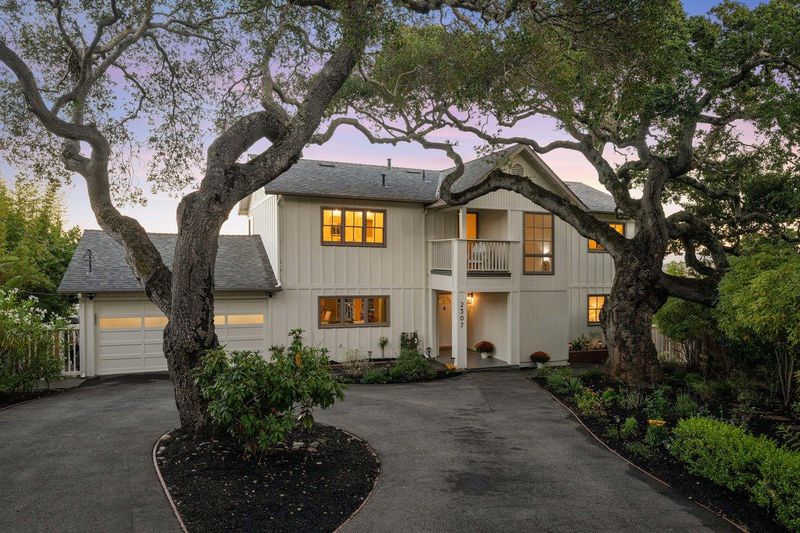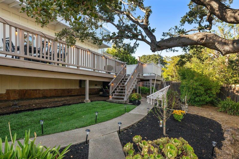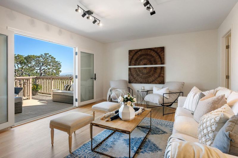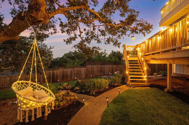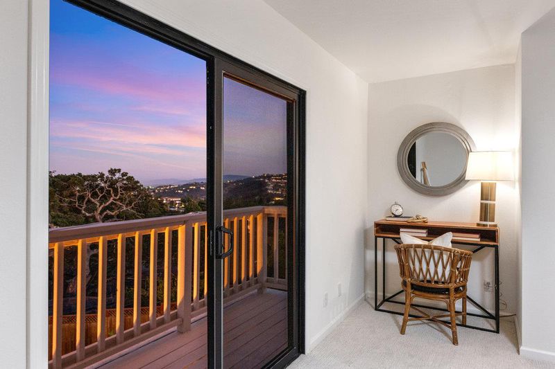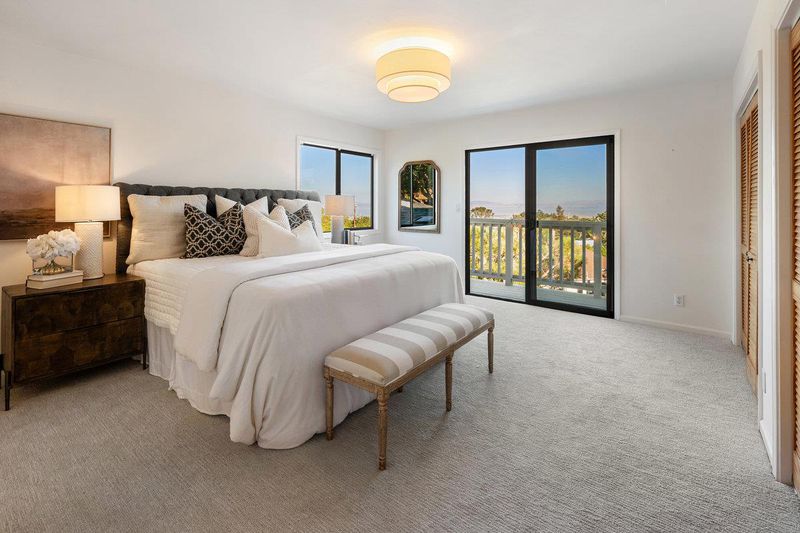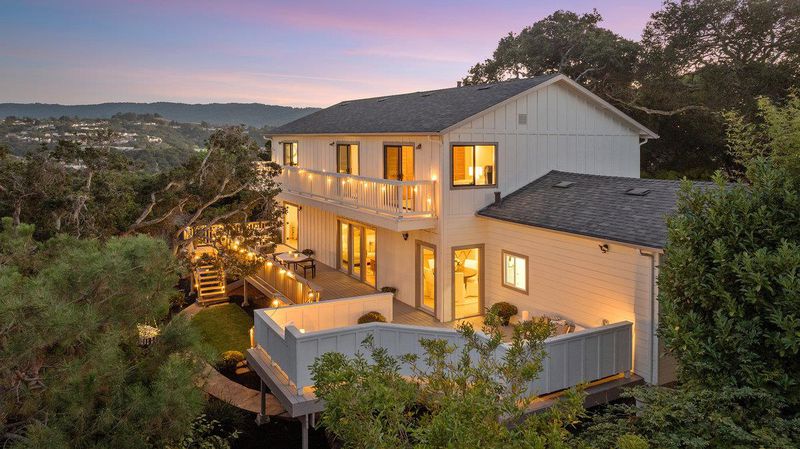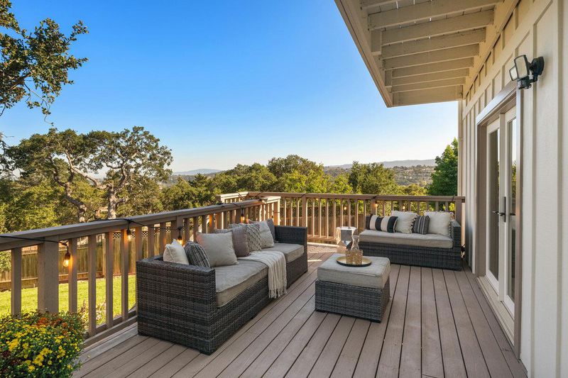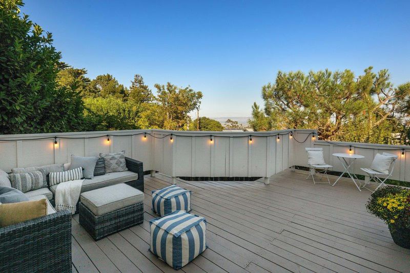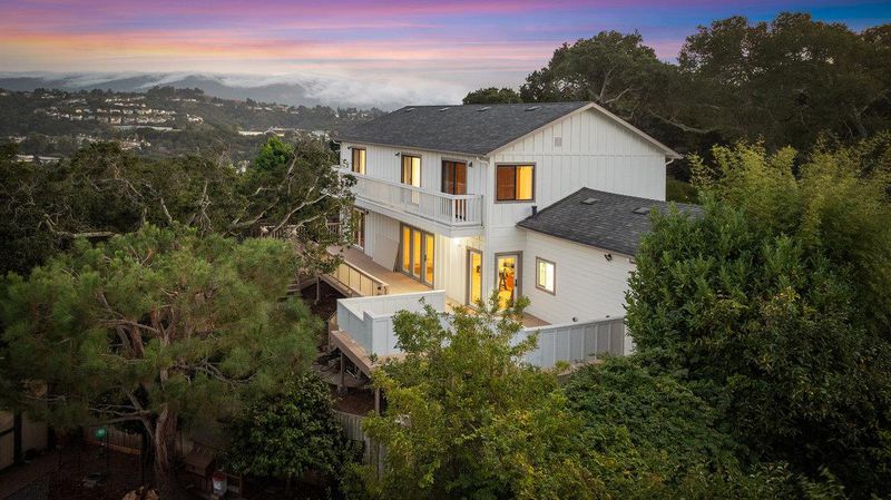 Showcasing sweeping bay-and-hill views & incredible indoor-outdoor spaces, this light-filled Belmont retreat sits on a park-like lot 11,000± sq ft with lush lawn & mature trees. With 4 bedrooms plus a formidable office, expansive decks for entertaining, & astounding views, this home blends comfort with functionality. An extra-long driveway welcomes you & buffers the home from the street. Inside, the main level features an open living/dining/kitchen layout with hardwood floors & a separate family room, both open to a sprawling deck. The remodeled kitchen is anchored by an oversized island and offers new counters, gas oven & stove, two sinks, and abundant storage. A ground-floor bedroom and full bath accommodate guests or multi-generational needs. Upstairs, find two large guest bedrooms, an office, & a generous primary suite; all open to a long view balcony. The hall also accesses a front-facing balcony. Fresh interior paint & brand-new carpet upstairs make the home move-in ready. Out back, the lot unfolds like a private park with level expansive lawn & mature trees ideal for play, pets, & gatherings. Enjoy Bay & hill views and watch 4th of July fireworks from the decks! The extra large 2-car garage makes parking and storage easy! Close to top Belmont schools, parks, and shopping!