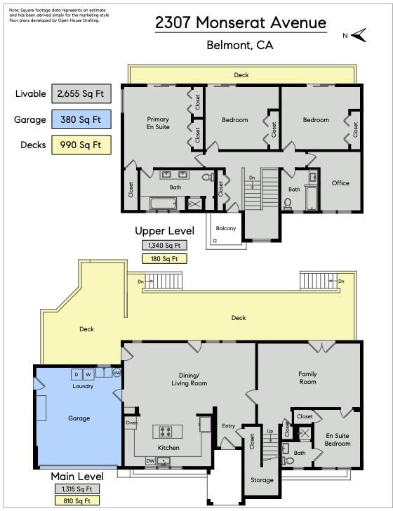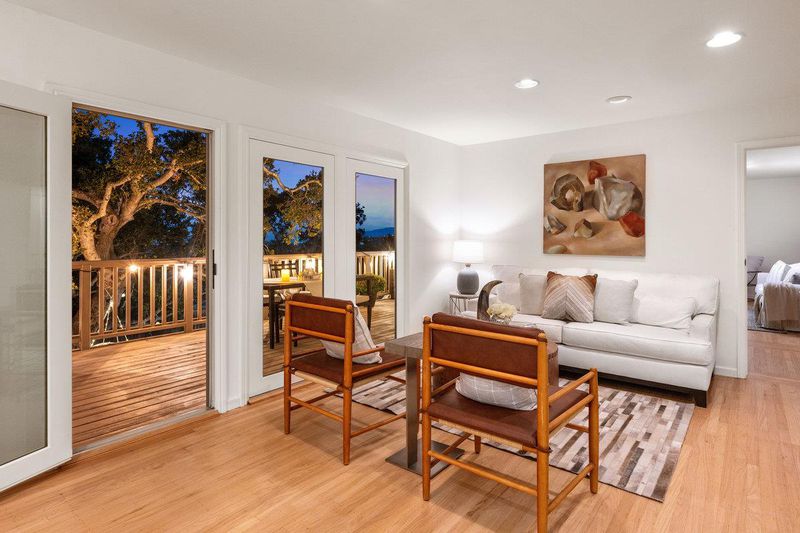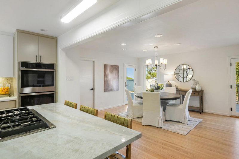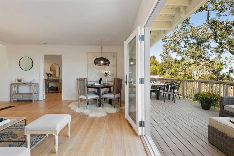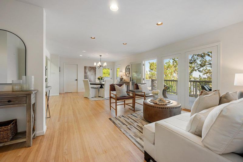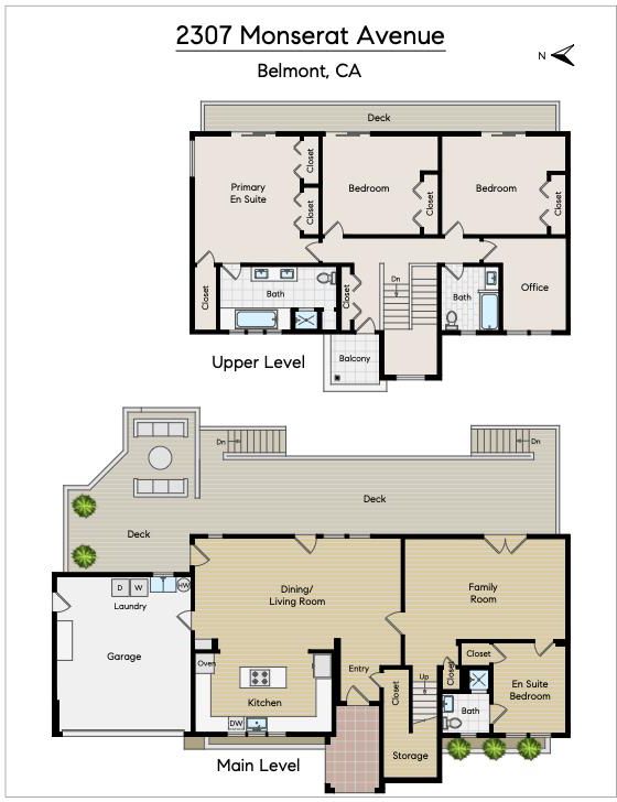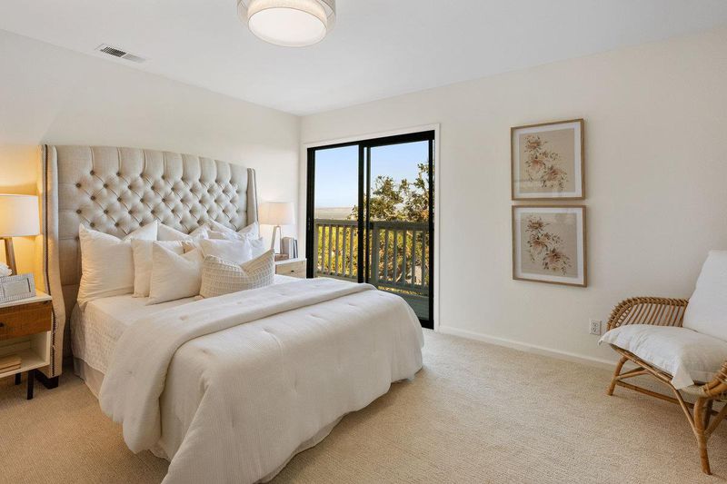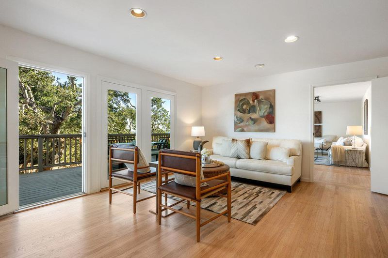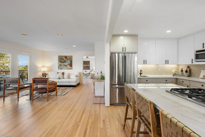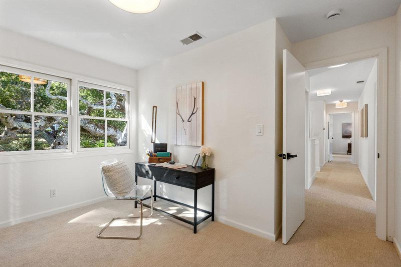 Showcasing sweeping bay-and-hill views & incredible indoor-outdoor spaces, this light-filled Belmont retreat sits on a park-like lot 11,000± sq ft with lush lawn & mature trees. With 4 bedrooms plus a formidable office, expansive decks for entertaining, & astounding views, this home blends comfort with functionality. An extra-long driveway welcomes you & buffers the home from the street. Inside, the main level features an open living/dining/kitchen layout with hardwood floors & a separate family room, both open to a sprawling deck. The remodeled kitchen is anchored by an oversized island and offers new counters, gas oven & stove, two sinks, and abundant storage. A ground-floor bedroom and full bath accommodate guests or multi-generational needs. Upstairs, find two large guest bedrooms, an office, & a generous primary suite; all open to a long view balcony. The hall also accesses a front-facing balcony. Fresh interior paint & brand-new carpet upstairs make the home move-in ready. Out back, the lot unfolds like a private park with level expansive lawn & mature trees ideal for play, pets, & gatherings. Enjoy Bay & hill views and watch 4th of July fireworks from the decks! The extra large 2-car garage makes parking and storage easy! Close to top Belmont schools, parks, and shopping!