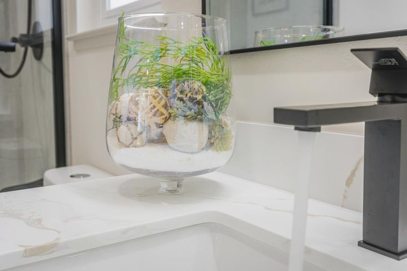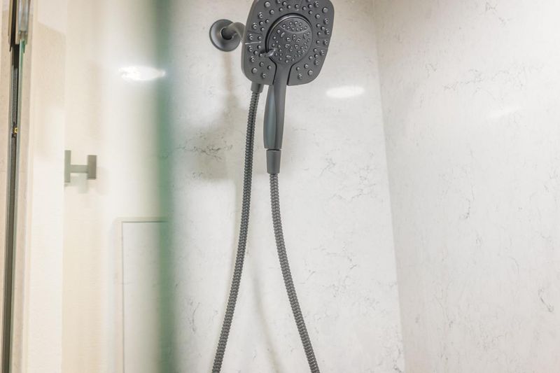 Dual Flush Toilet, Full on Ground Floor, Primary - Stall Shower(s), Shower and Tub, Solid Surface, Stall Shower - 2+, Tile, Updated Bath