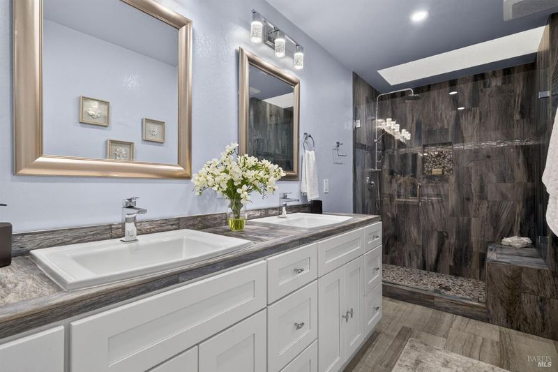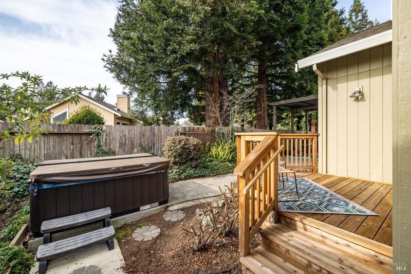 Come home to Chanterelle in Sonoma's coveted 55+ community where Wine Country living meets ease and elegance. This beautifully updated two-story home offers the rare convenience of a main-level primary suite with a remodeled bath, creating the ideal blend of comfort and accessibility. The remodeled kitchen features modern cabinetry, beautiful solid-surface counters and a gorgeous backsplash as well as a cozy breakfast nook, perfect for entertaining or quiet evenings at home. The open living and dining areas are light-filled and inviting, flowing effortlessly to a private patio complete with hot tub that backs to walking trails, the pool, and clubhouse just steps from your door. Upstairs, guest quarters or flex space provide room for visiting family, hobbies, or a home office. Thoughtful upgrades, a peaceful setting, and a move-in-ready condition make this residence a standout in one of Sonoma's most desirable active-adult enclaves. Enjoy low-maintenance living with community amenities, scenic trails, and close proximity to downtown Sonoma's shops, dining, and tasting rooms. Discover the lifestyle you've earned relaxed, refined, and distinctly Wine Country.