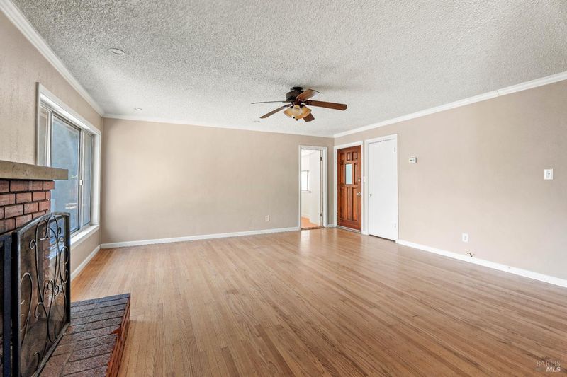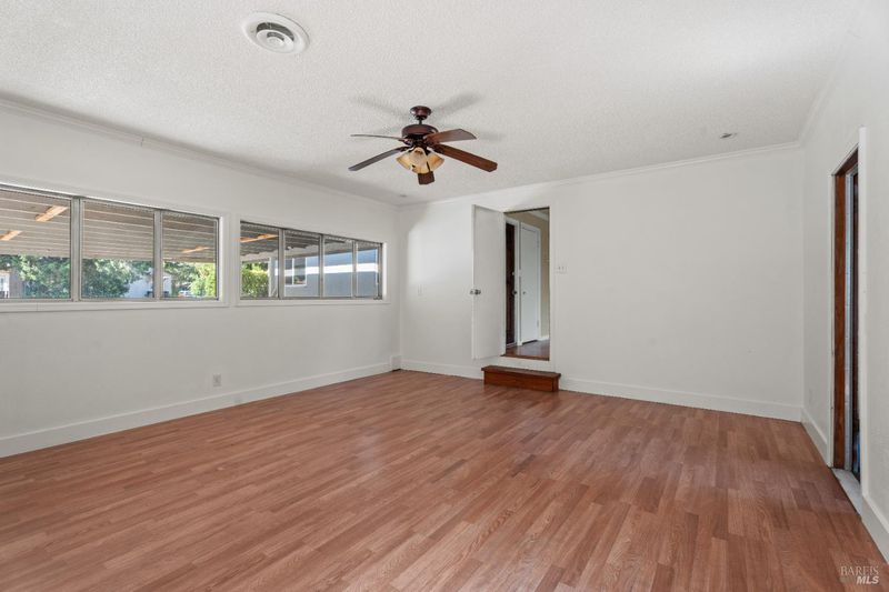 Enjoy the convenience of location and turn key amenities in this beautiful mid-century home. From the original oak hard wood floors, abundant windows of natural light, wood burning stove and upgraded kitchen, this home is ready for you. All three bedrooms have ceiling fans and upgraded duel pane windows with beautiful hardwood floors. The full bathroom in the hall is spacious with original charm. Separately on the South side of the living room, step down into the rec room, or oversized bedroom, or play room with additional half bath and access to the backyard. That backyard boasts a covered patio via the dining room sliding door and a blank canvas to create your own oasis. An incredible opportunity in a quiet neighborhood conveniently located in central Ukiah.