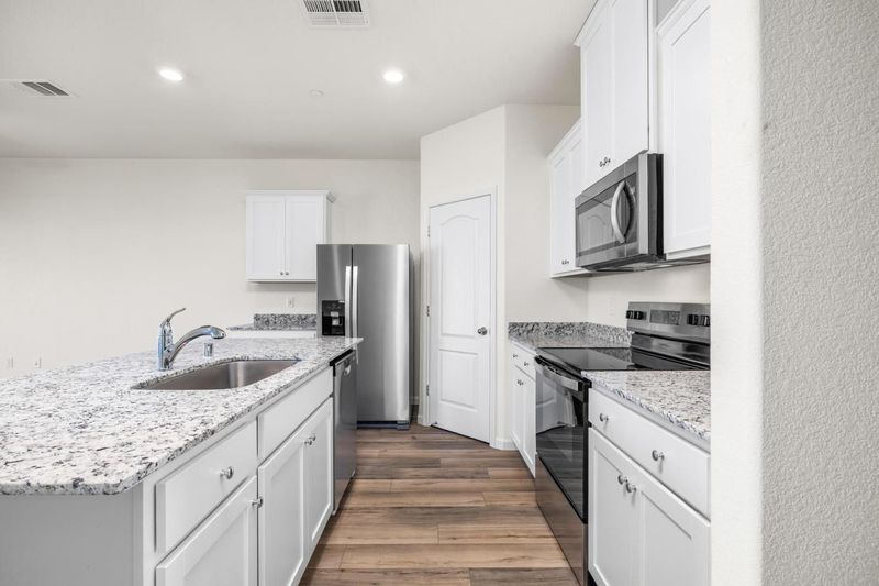 Make first impressions count with this beautiful new construction home at Cannery Park. This single-story, four-bedroom, two-bath home is bursting with character. The kitchen is open to the family room, creating the ideal entertainment area. The master suite is the perfect place to retreat to, with an en-suite bathroom with a large shower, beautiful vanity and a walk-in closet. Additionally, enjoy plenty of storage space throughout this home. All upgrades come included in this home such as granite countertops, energy-efficient kitchen appliances, Wi-Fi-enabled garage door opener and more.